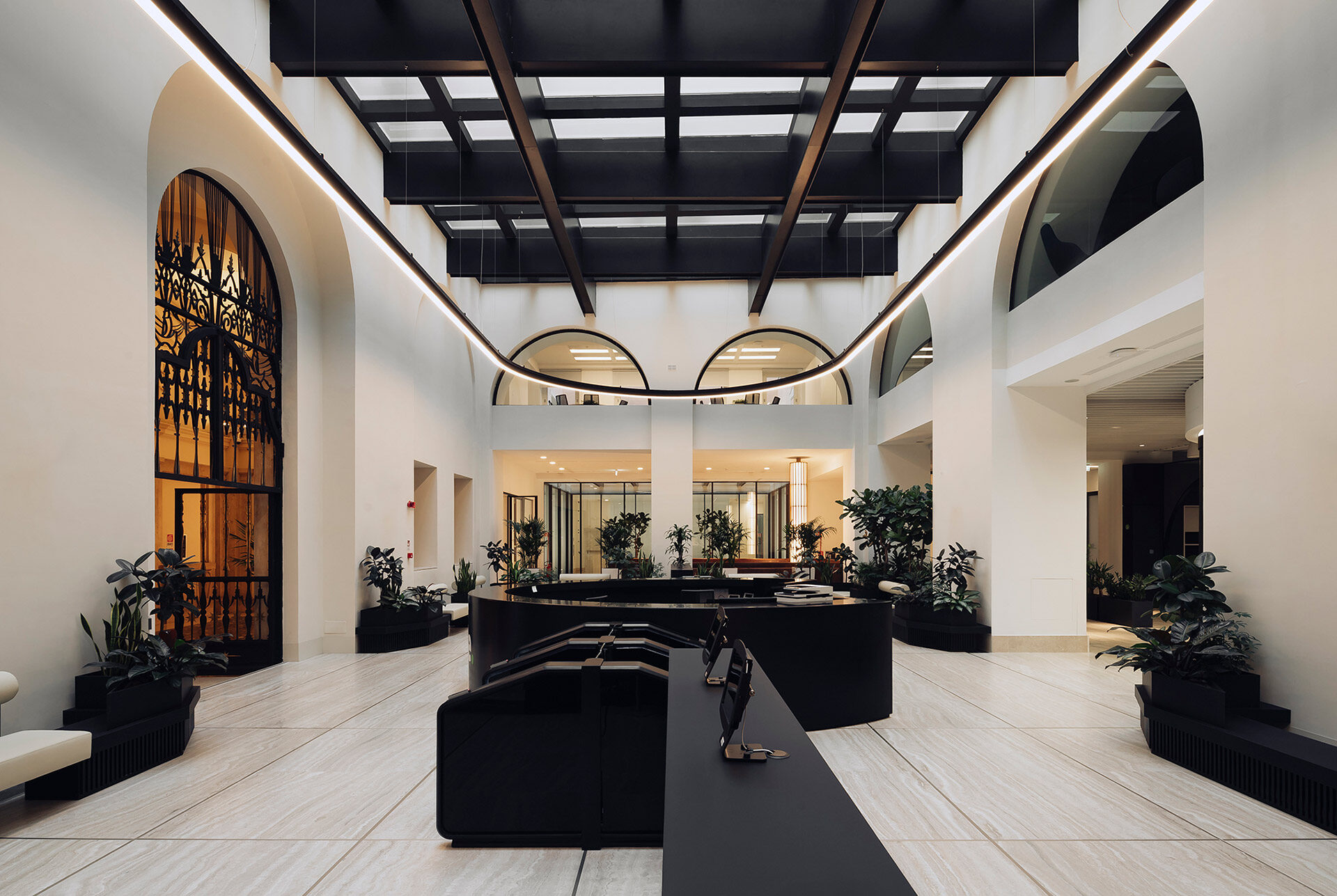 Der historische Sitz der INA, der imposante, 1927 eingeweihte Palazzo in der Via Veneto in Rom, ist eines der ersten Beispiele für ein Bürogebäude in Italien. Das Sanierungsprojekt des Architekturbüros Scandurra, das die Auflagen der Denkmalschutzbehörde berücksichtigt, geht von den Originalzeichnungen des Architekten Carlo Broggi aus, um die historischen Räume an die Anforderungen moderner Arbeitsumgebungen anzupassen. Die Maßnahme zielt darauf ab, dem Innenlayout Klarheit und Einfachheit zurückzugeben, indem die im Laufe der Zeit hinzugekommenen Anbauten entfernt und der zentrale Innenhof, das Herzstück des ursprünglichen Projekts, wiederhergestellt werden.