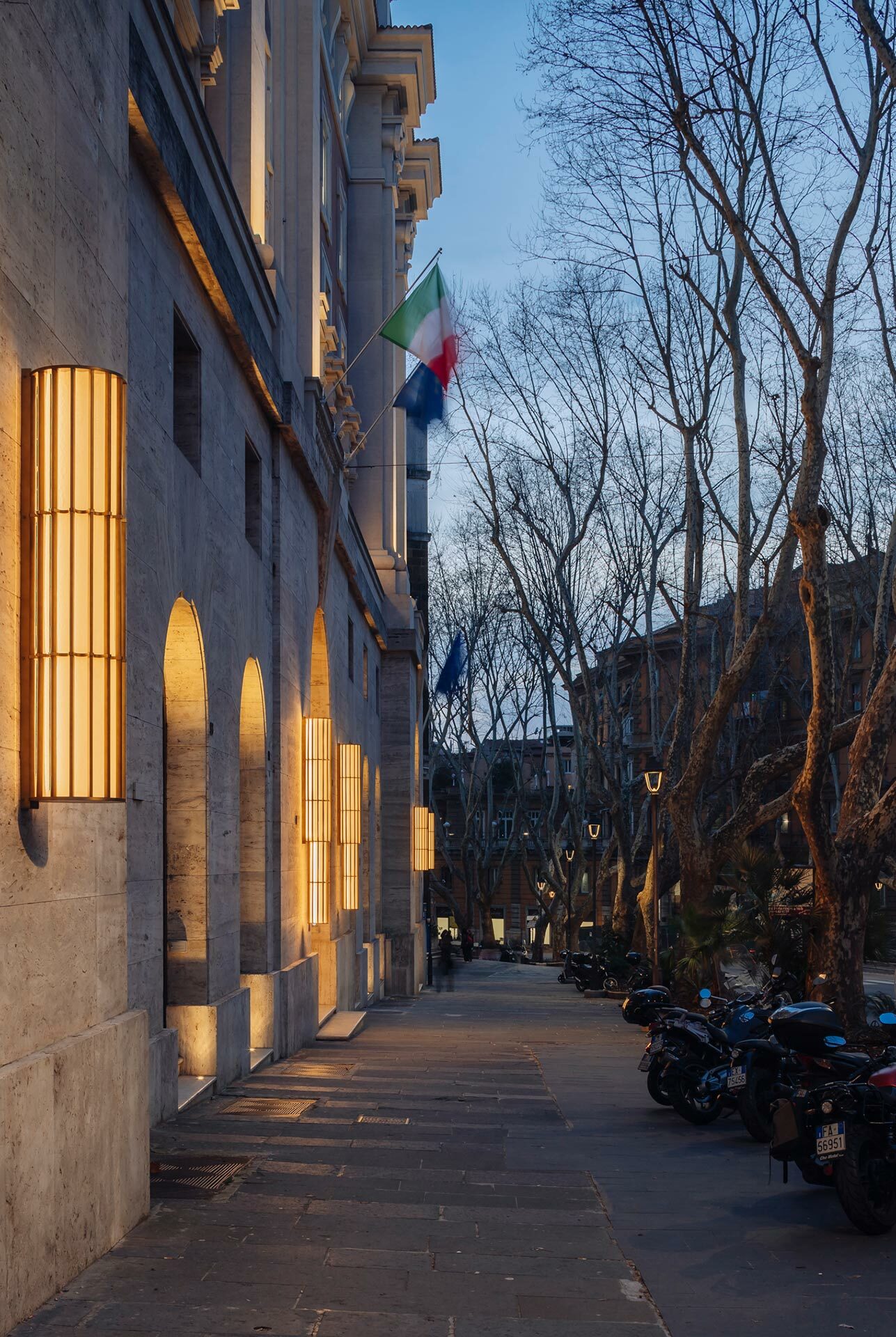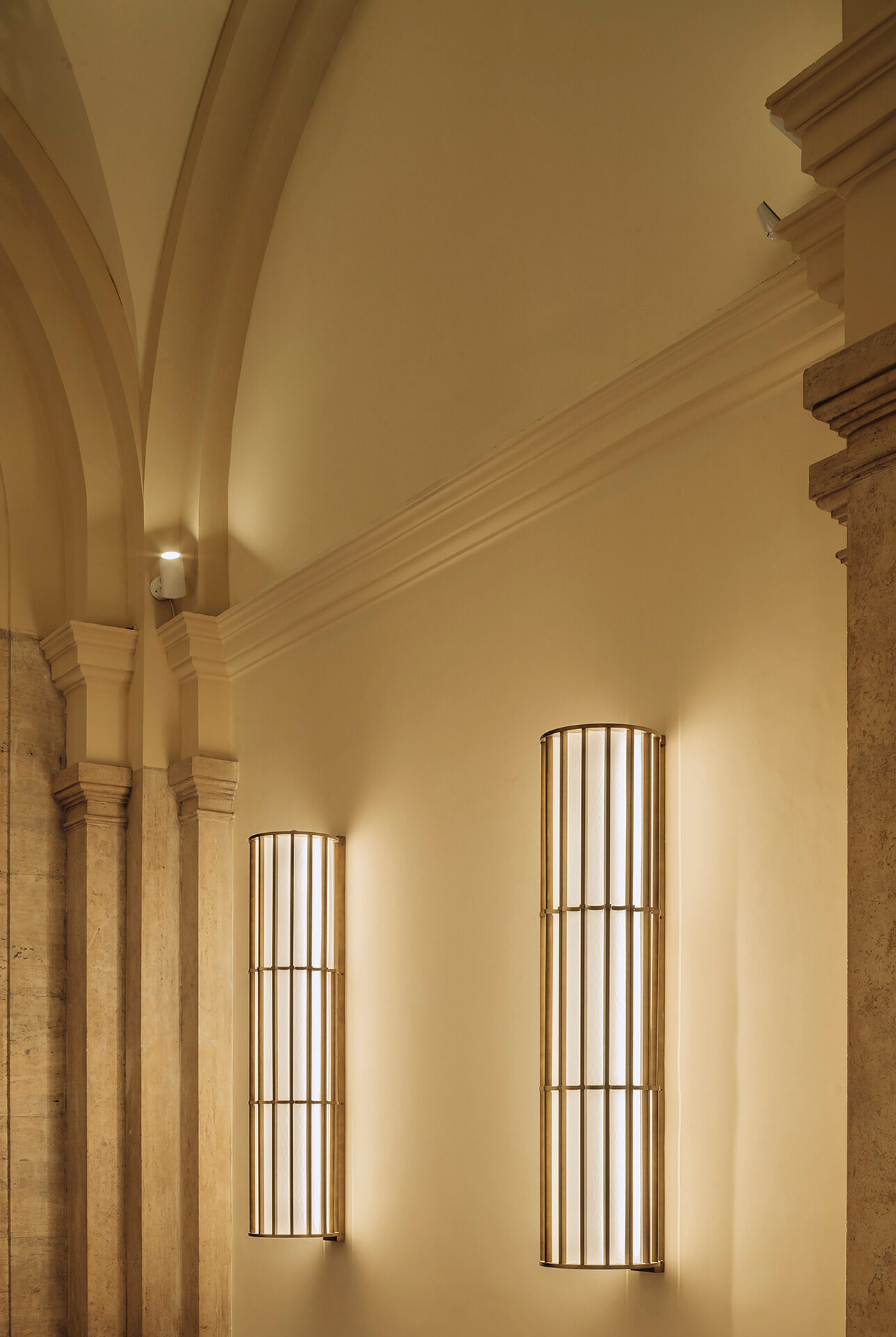 Die Zusammenarbeit zwischen dem Studio Scandurra und Panzeri hat zu einer Reihe von maßgeschneiderten Leuchten geführt, die speziell für die Aufwertung der Fassade des historischen Gebäudes und seiner Innenräume entworfen wurden: eine moderne Interpretation der klassischen Formen der dorischen Säule und ihrer Rillen, die in Licht verwandelt werden und gleichzeitig eine dekorative und architektonische Bedeutung erhalten. Die ausdrucksstarken Leuchtsäulen und ihre imposante Präsenz gliedern die Räume und verschönern die Durchgänge und Zugänge, dank Versionen für die Innen- und Außenwand sowie in voller Höhe für den Boden. Die individuelle Gestaltung betraf auch Standardprodukte wie Golden Ring und Hilow Line, die maßgeschneidert neu entworfen wurden, um den Raum zu charakterisieren und sich an die Proportionen der Räume anzupassen, für die sie bestimmt sind.